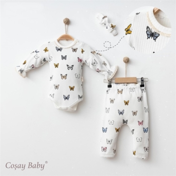 COSAYBEBE - 6/12 AY-24121-KELEBEK BASKILI 3 LÜ TAKIM - #1111267709