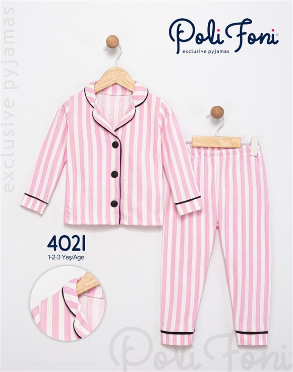 1/3 YAŞ 4021-PEMBE ÇİZGİLİ YAKALI PIJAMA TAKIM