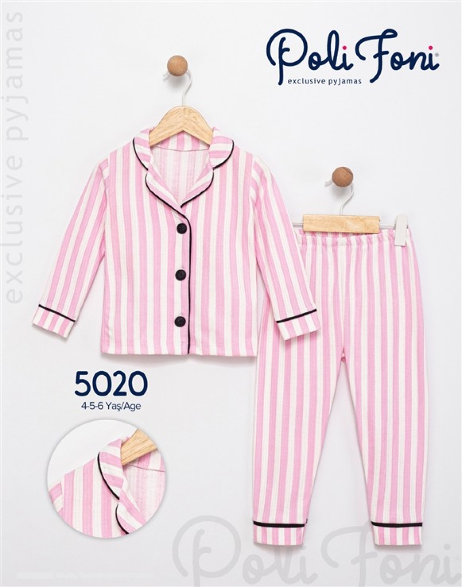 4/6 YAŞ 5020-PEMBE ÇİZGİLİ YAKALI PIJAMA TAKIM
